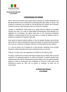 Le ministère des Finances, faisant la genèse de l’affaire, rappelle que «la Cour de Cassation française s’est prononcée dans le sens d’un rejet non spécialement motivé, sans trancher les questions de fond soulevées dans le pourvoi, rendant par conséquent la décision du Tribunal arbitral de Paris effective ». Mamadou Moustapha Bâ indique cependant qu’à ce stade, « aucun bien appartenant au Sénégal n’a fait l’objet de saisie ».Membre de la célèbre famille Bourgi d’origine libanaise et installée au Sénégal depuis les dernières années de l’époque coloniale, Ibrahima Abou khalil est un homme d’affaires, proche de Karim Wade, son co- accusé dans la vaste opération de « traque des biens mal acquis » qui avait suivi en 2012 l’élection de Macky Sall à la présidence de la République. Après un procès très médiatisé Bibo Bourgi considéré comme le principal & quot ; homme de paille & quot; de l’ancien puissant ministre d’Etat, avait été condamné à cinq ans de prison ferme et 138,239 milliards FCfa d’amende. Une décision dont l’exécution entreprise a permis la saisie de plusieurs biens du Bibo Bourgi dans le pays. M. Aboukhalil s’était prévalu de sa qualité d’homme d’affaires de nationalité française pour saisir, sur la base du traité bilatéral d’investissement France-Sénégal et du règlement de la Commission des Nations Unies pour le droit commercial international (CNUDCI), le Tribunal arbitral de Paris qui avait retenu un principe de réparation quant au préjudice qui résulterait de l’exécution dudit arrêt. C’est ainsi que le 2 octobre 2021, l’Etat du Sénégal a été condamné par la Cour d’appel de Paris à payer des dommages et intérêts avoisinants 256 millions d’euros à Ibrahim Abou Khalil, dit Bibo Bourg. Dans sa note, le Ministre des Finances indique que « le Sénégal est un Etat souverain, bénéficiant d’une immunité d’exécution rendant impossible toute mesure d’exécution forcée sur ses biens ».