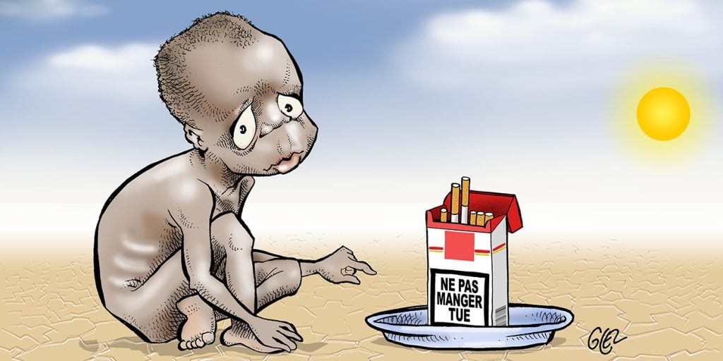 Selon les statistiques de l’OMS, la superficie consacrée à la culture du tabac a augmenté de 3,4 % en Afrique, entre 2012 et 2018, tandis qu’elle a diminué de 15,7 % au niveau mondial. Au cours de cette période, la production de feuilles de tabac a diminué de 13,9 % au niveau mondial, alors qu’elle a augmenté de 10,6% en Afrique. Non seulement les plans de tabac prennent la place des céréales ou des légumes, mais ils fragilisent les écosystèmes, épuisent la fertilité des sols, contaminent les masses d’eau et polluent l’environnement. In fine, la production de tabac exacerbe l’insécurité alimentaire et nutritionnelle, dont souffrent 57,9% des Africains, à des niveaux modérés à graves.