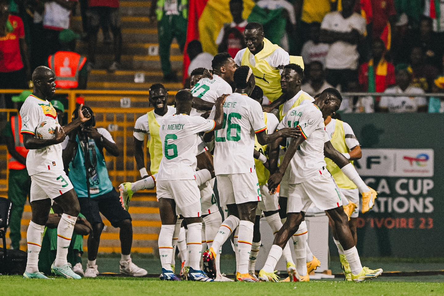 Mendy, Diatta, Koulibaly, M. Niakhaté, Jakobs – P. M. Sarr, N. Mendy (ou Abdou Diallo), Camara – I. Sarr, H. Diallo, Mané.