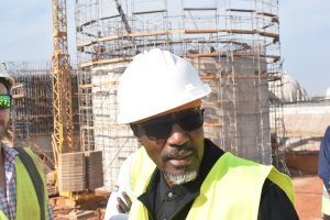 La délégation poursuit sa visite. Elle emprunte un escalier latéral de l’ouvrage d’arrivée et se retrouve à la terrasse de la bâche d’arrivée d’eau déjà construite. A partir de ce point, on a une vue panoramique sur le chantier. Les clarificateurs secondaires, les digesteurs, les ouvrages de prétraitement, de décantation primaire, les bâches à boue sortent de terre. La vue panoramique rassure. « Je me réjouis de l’état d’avancement des travaux. Entre ma première visite où c’était un terrain vide et aujourd’hui, il y a une nette évolution. Si ce rythme est maintenu, nous pouvons être dans les délais. Maintenant, il faut accélérer la cadence », a invité le Directeur Général, Mamadou Mamour Diallo.