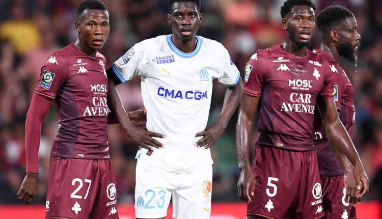 Pour le compte du match inaugural de la deuxième jour née de Ligue 1, l’Olympique de Marseille, vainqueur du Stade de Reims la semaine passée (2- 1), se déplaçait à Saint-Symphorien pour y affronter le FC Metz, lourdement battu à Rennes pour son retour dans l’élite (1-5). Pour les choix tactiques, Marcelino fait très peu tourner par rapport au match contre le Pana. Seuls changements, le retour de Kondogbia au milieu, Soglo titulaire à la place d’Ounahi et Balerdi associé à Mbemba derrière. Les Marseillais débutaient la rencontre en dominant son adversaire du soir, confirmant cet ascendant avec le poteau trouvé par Ismaïla Sarr dès la deuxième minute de jeu d’une belle reprise. L’international sénégalais sollicitait ensuite Alexandre Oukidja, vigilant devant sa ligne sur son enroulé (6e). C’est finalement Emran Soglo qui trouvait la faille en trompant le gardien algérien au premier poteau (0-1, 14e), pour son premier but en L1. Les hommes de Marcelino poursuivaient leurs efforts pour aller chercher le break, qui aurait pu arriver si Soglo (36e) et Sarr (38e) avaient été plus précis. Fali Candé était, quant à lui, proche d’égaliser d’une superbe reprise lointaine, mise en échec par la parade de Pau Lopez (39e).
