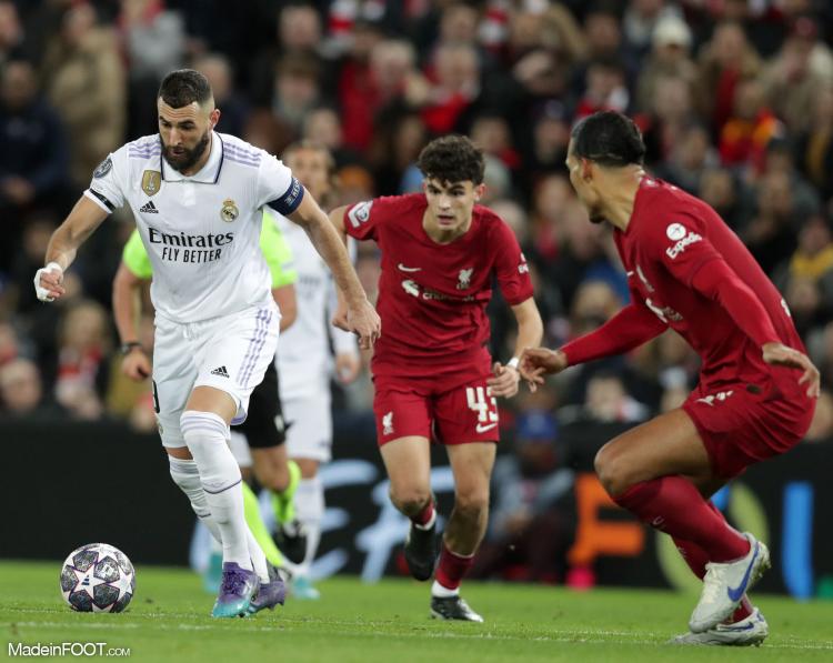 Une boulette partout mais déjà 4 buts dans cette rencontre folle et c’était encore loin d’être terminé. Juste avant la pause Robertson effectuait un sauvetage monstrueux (45e) mais toute la défense des Reds craquait à nouveau au retour des vestiaires. Militao catapultait une tête imparable sur ce coup-franc de Modric (2-3, 47e). Quelques instants plus tard, c’est Benzema qui s’infiltrait dans la défense pour marquer d’une frappe déviée par Gomez (2-4, 55e). Puis venait le numéro de la soirée du Français.