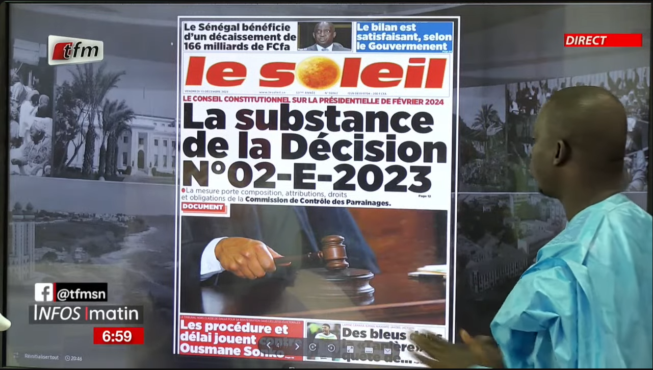 REVUE DE PRESSE TFM DE CE 15 DECEMBRE AVEC CHEIKH DIOP REVUE DE PRESSE TFM DE CE 15 DECEMBRE AVEC CHEIKH DIOP PolitiqueVideos Par Le GP On Déc 15, 2023 Partager Partager