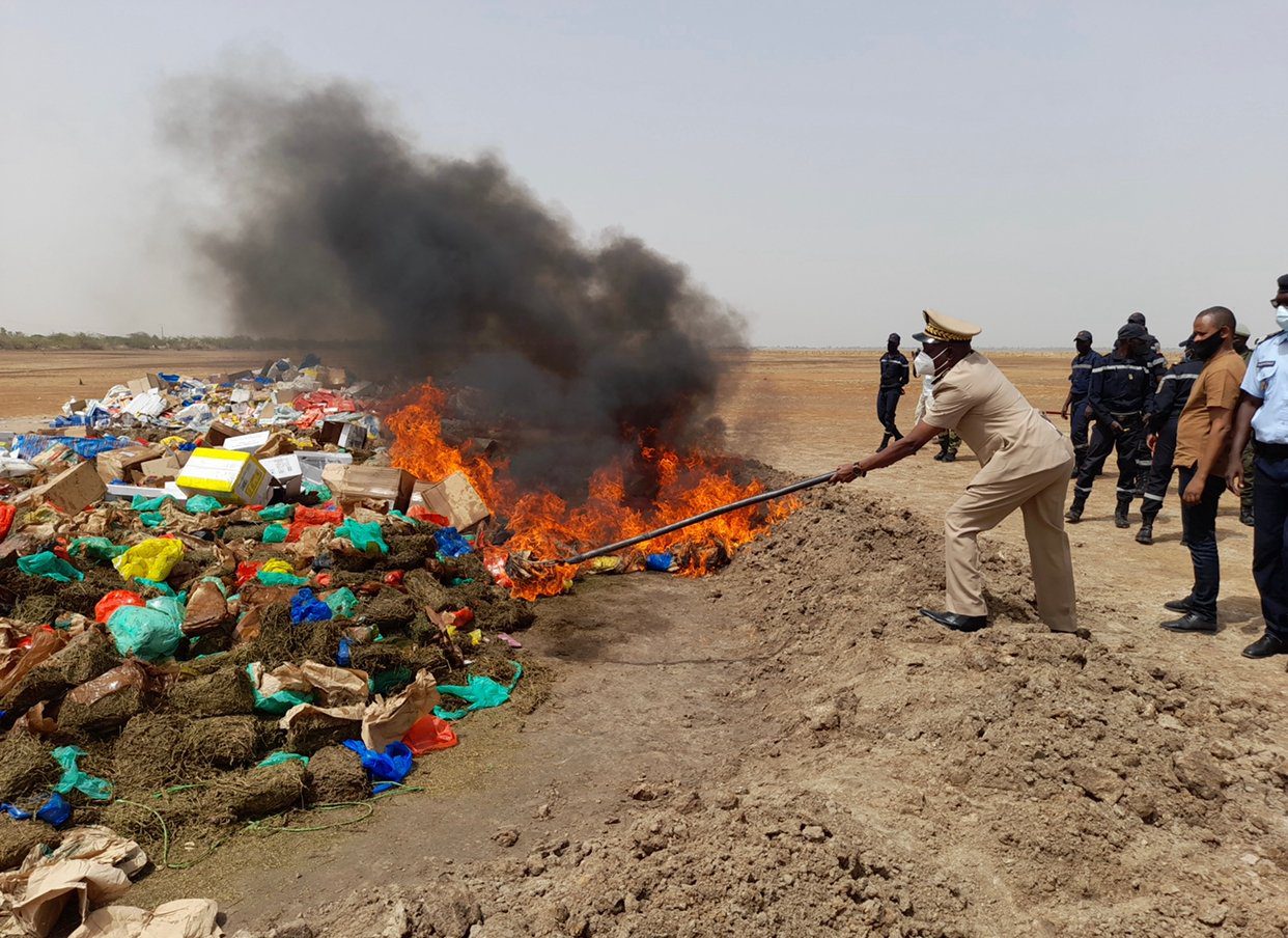 Les douanes ont procédé à l’incinération de plus de 19 tonnes de drogue, ce samedi. Le montant de la marchandise saisie par la marine nationale est estimé à 311 milliards de F CFA, rapporte PressAfrik. L’opération d’incinération à eu lieu à la cimenterie Dangote.