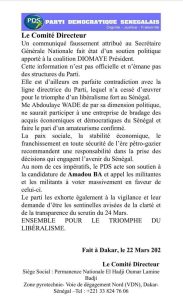 Ci-dessous, le communiqué du Comité directeur du PDS :
