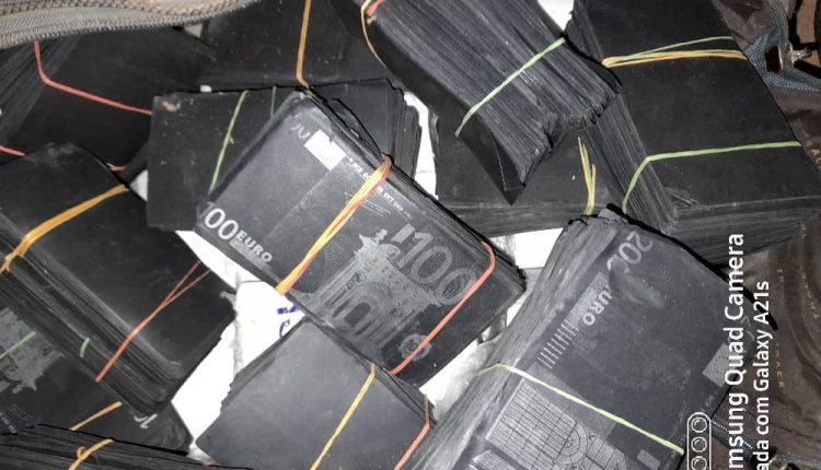 « La saisie a eu lieu le lundi 5 juin 2023 vers 19 h, à la suite de l’exploitation d’un renseignement effectuée par la Brigade polyvalente n°1 du GPR. En effet, les délinquants, au nombre de quatre, ont été appréhendés par les agents dans une maison sise au quartier Nguente de Thiès. Ils détenaient par-devers eux deux paquets de billets noirs en coupures de 200 et de 100 euros. La contrevaleur de ces billets noirs saisis est d’un million huit cent mille, euros soit un milliard cent quatre-vingts millions F CFA », lit-on dans le communiqué de la Division de la communication et des relations publiques de la Douane.
