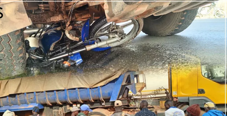 Le camion immatriculé DK-6110-BC et la moto modèle TVS roulaient à vive allure lorsqu’ils sont entrés en collision, ont indiqué des témoins.