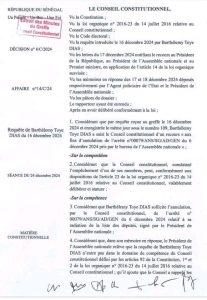 Le Conseil constitutionnel se déclare incompétent sur la saisine de Barthélémy Dias demandant l’annulation de sa radiation en tant que député par le bureau de l’Assemblée nationale.